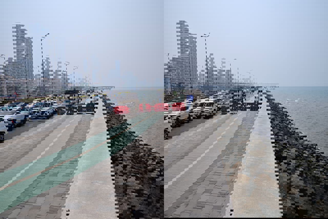 दक्षिणेकडून उत्तरेकडे जाताना मरीन ड्राइव्हवरील बोगदा संपल्यावर संगीतमय रस्त्याचा प्रारंभ